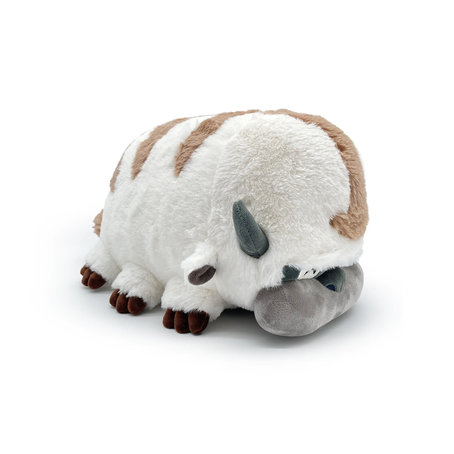 Appa has flown his way back into Youtooz so you can bury your head into his soft fur and take the best nap of your life! Lying down at 12 inches long with a calm face and relaxed eyes sitting above and adorable snout, short rounded horns rise up out of his shaggy head as a tuft of chin fur fluffs out from his face. With long brown markings running from his head down to a flat tail over his creme furred body, his six legs spread out lazily with dark little paws. This plush absolutely is packed to the seams with 100% PP cotton and made of a soft minky material, absolutely perfect for cuddling and being the best nap buddy!