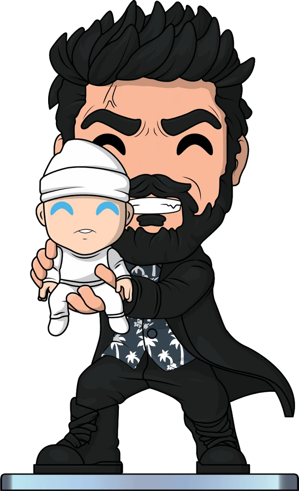 Billy Butcher lasers his way into Youtooz with what can only be described as a blatant disregard for human safety! Standing at 4.6 inches tall he grips the unassuming weapon of mass destruction, the white clad laser baby, in two outstretched hands threatening a smouldering demise to anyone who crosses him. His messy black hair is sculpted tousled back while a strained grimace crosses his rugged bearded face as he assesses the situation. Always casual but ready for a punch on, he wears a long flowing black trench coat over a grey and white palm tree patterned hawaiian shirt with black pants tucked into combat boots The exterior of his packaging sees Billy fully utilizing the laser baby as he fights his way through a hospital nursery. While the interior surrounds him in a graffiti scrawled white brick wall, this then continues onto the protective sleeve with the wall splattered in blood and printed with The Boys logo on the rear. This collectible ships in a matte, embossed, protective outer sleeve and a custom sized plastic protector for maximum protection during shipping.
