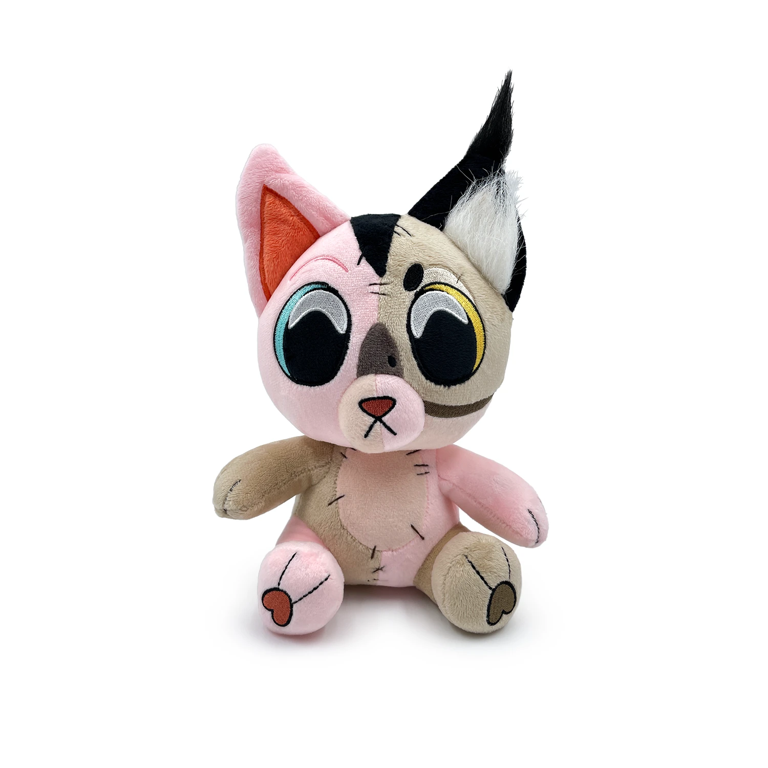 The (literal) collab of the century explodes into Youtooz with the internet’s most powerful felines joining more than just forces to combine into the cutest mash-up youve ever seen! Sat 9 inches tall the flawless amalgamation of Bingus and Floppa stares at you with the largest blue and yellow eyes shining from his face which is stitched down the middle, joining their adorable faces together in perfect harmony. His mismatched body is sewn in an alternating pattern and changes between a soft pink to brown markings across the different sections of his patchworked figure, from the tips of his large pointy ears down to his soft heart padded paws. This plush is packed to the seams with 100% PP cotton and is made of a mix of faux fur and minky materials, absolutely perfect for cuddling or telling your deepest darkest secrets.