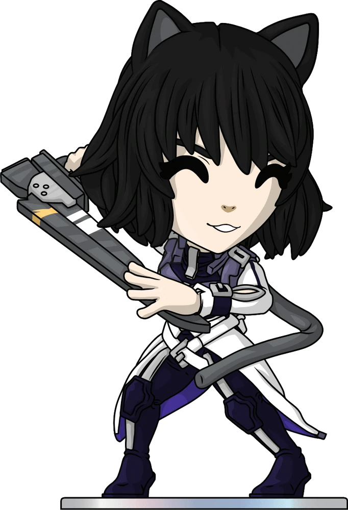 The B of RWBY arrives to Youtooz! Standing at 4.5 inches, Blake is ready to fight. She is wearing her long white jacket with her one piece navy bodysuit underneath. Her dark black hair falls just above her shoulders with her cat ears perking up from the top of her head. She is posed in an action fighting manner and is using both hands to wield her weapon of choice, the Gambol Shroud. The exterior of her double-walled packaging shows the inside of a dark mansion during the night, with Blake standing on a large staircase. The interior is a white background with violet flower petals drifting and floating around the scene. This collectible ships in a matte, embossed, protective outer sleeve and a custom sized plastic protector for maximum protection during shipping.