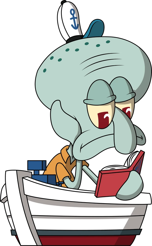 Bored Squidward is bored. Squidward sits in a red and white boat at 4.4 tall, with his head resting in his right hand. In his left hand he holds a red book with the title Dance Now! in blue on the cover. His mouth is stretched in a downward expression and he wears a bored expression on his face, wrinkles etched into his forehead. On top of his head sits a white hat with a blue anchor decal. The exterior of his double-walled window box features an image of Spongebob watching Squidward in his boat. The interior of the packaging includes a blue background. This collectible ships in a matte, embossed, protective outer sleeve and a custom sized plastic protector for maximum protection during shipping.