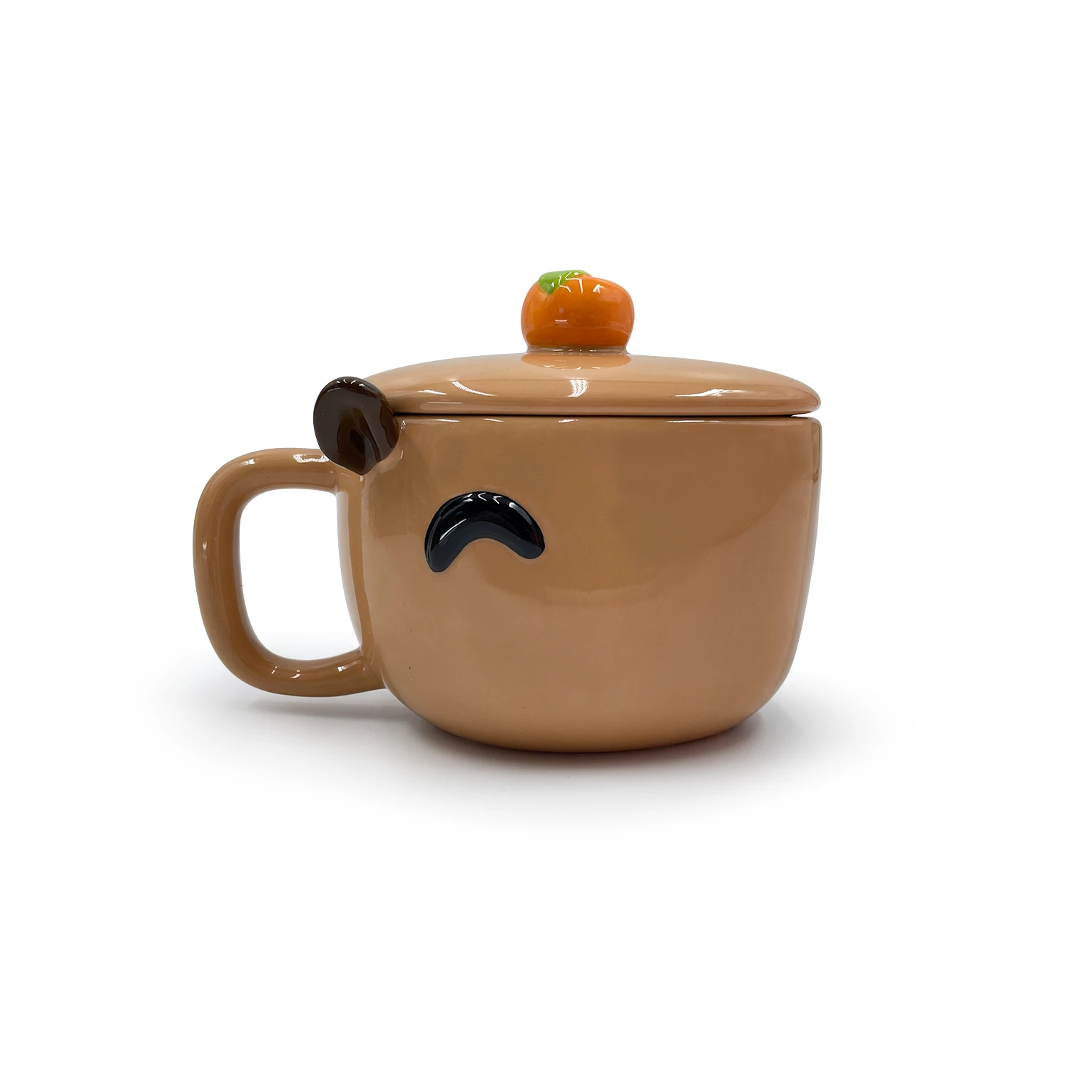 Made of ceramic, this mug is expertly sculpted in a Capybaras likeness with a large dark nose taking up its front and small round ears, while an orange yuzu fruit balances perfectly atop their brown head which can be detached to keep its contents safe! Not a coffee person? Don’t worry! You can fill him up with trinkets, a plant or anything your heart desires! This Capybara would prefer to be hand washed but is perfectly microwave and dishwasher safe, watch him spin round and round in the microwave as he wakes up from a nap!