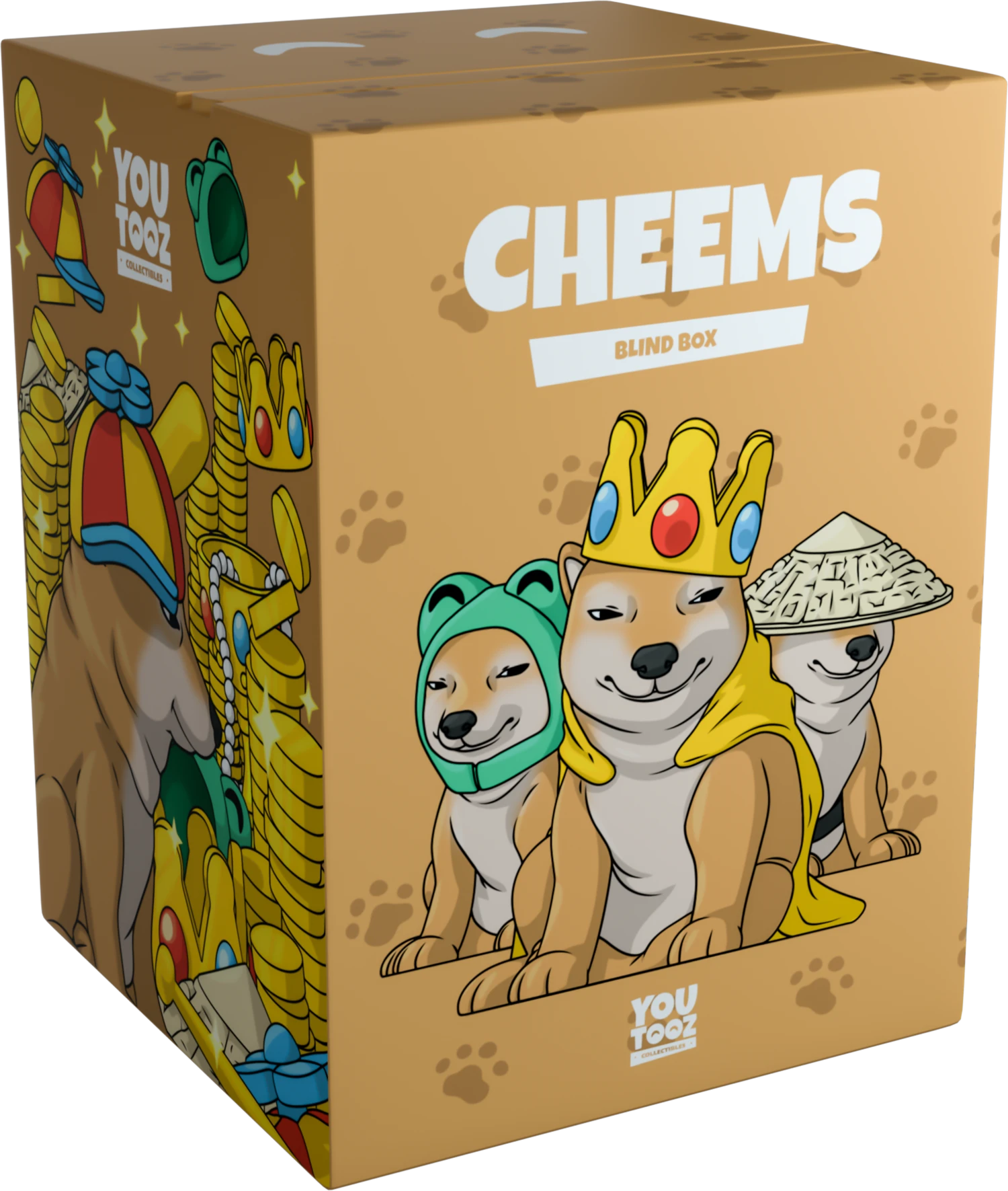 Balltze is back better than ever, now with cute hats! The Cheems Blind box has four Cheems variants with 4 types of hats. Each box will be a surprise as to which variant you will be getting. Can you collect them all? You have a 1 in 4 chance of getting Froggy Cheems, King Cheems, Samurai Cheems and Cheems wif Hat. Each figure stands at 3 inches tall. Test your luck and get the single box, or get the full collection set to have them all! Each Blind box ships in a matte, embossed, protective outer sleeve and a custom-sized plastic protector for maximum protection during shipping.