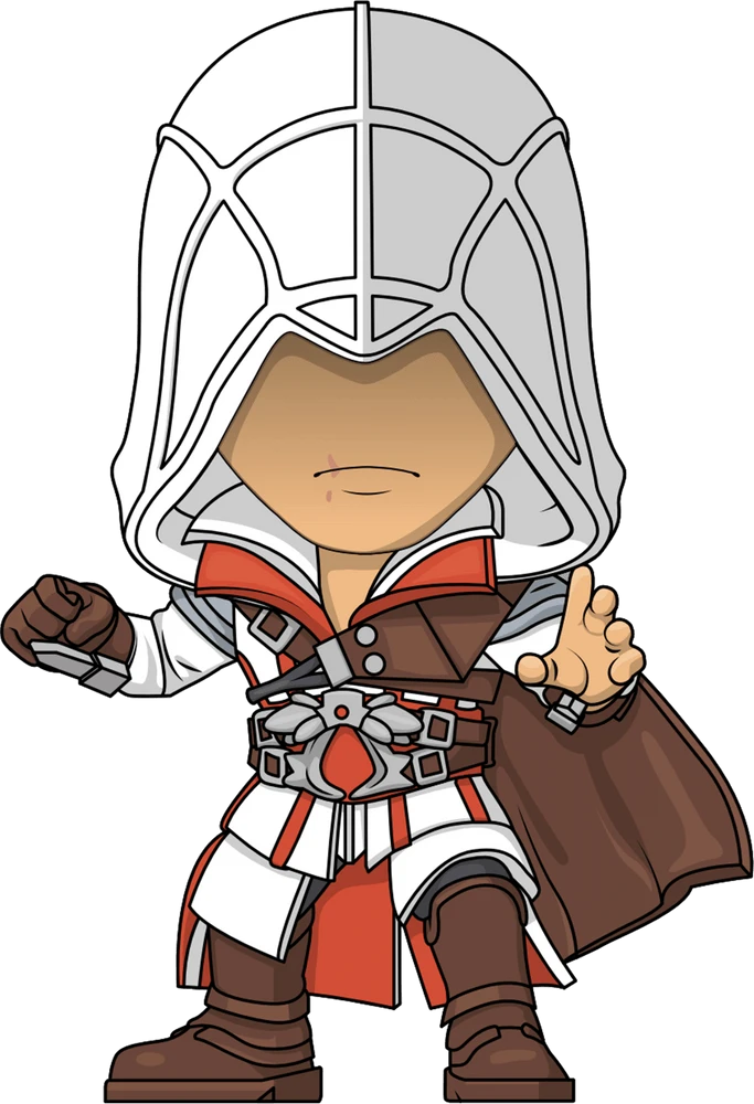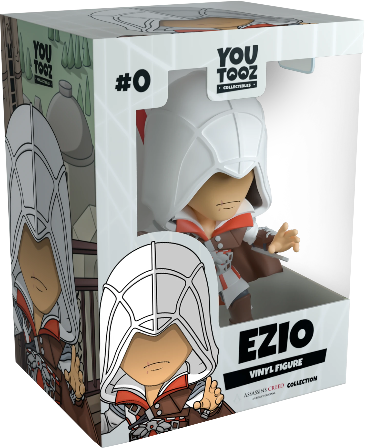 Is Ezios next target Youtooz? Surely thats not why hes made his debut! At 4.5 inches tall with an intricate hood pulled down over their mysterious face to reveal only his scarred pursing lips, hes posed raising both arms and preparing to strike with two hidden blades extending out from his wrists. With red and white collars fanning out from his neck as a segmented cloak falls down to cover his arms and legs, his billowing brown shoulder cape flows in the breeze and is strapped around his chest. An intricate belt sits at his waist and is held in place with two brown belts that match his gloved right hand, blade cover and thick strapped boots. The exterior of his packaging sits you atop the town’s tallest buildings looking out over a sunny countryside. While the interior is a stark white with the Assassins Creed logo printed in red at its back and the protective sleeve fades red to white from top to bottom. This collectible ships in a matte, embossed, protective outer sleeve and a custom sized plastic protector for maximum protection during shipping.