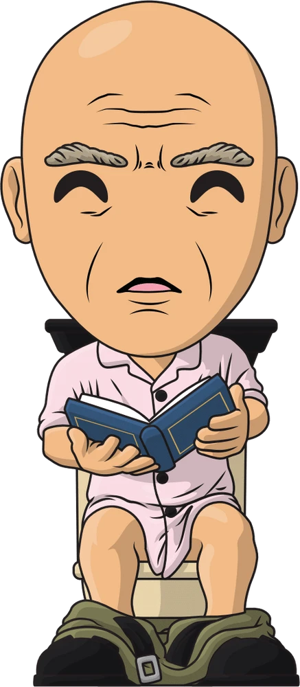 Sculpted at 4.3 inches, Hank is seen with a surprised look on his face as he is using the bathroom. He is dressed in a light pink button-up shirt that is detailed with black buttons. His pants are by his ankles, with his black belt undone. He is sitting on a tan toilet while he reads a story out of a blue book that he is using both of his hands to hold. The exterior of his double-walled packaging shows the inside of a bathroom. The interior is an empty cube stone patterned bathroom wall. This collectible ships in a matte, embossed, protective outer sleeve and a custom sized plastic protector for maximum protection during shipping.