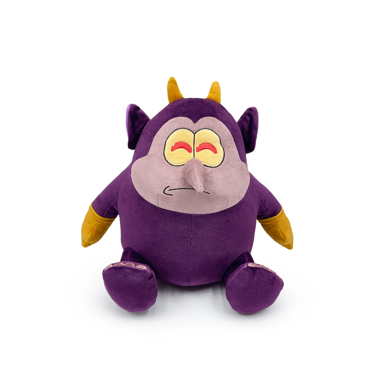 Henchman is just here to help with his Youtooz plush debut! Slumped down with his feet kicked forward and brown gloved hands resting at his sides, he sits at 9 inches tall with a slight frown curving over his mouth. His bright yellow eyes are joined at the middle and shine with bright red pupils while two pointed ears sit at the sides of his head which have short horns emerging from its top. In true demon form, he has small bat-like wings emerging from his wide back and a long thin pointed tail that wraps around to his front. This plush is absolutely packed to the seams with 100% PP cotton and is made of a mixture of minky materials! Absolutely perfect for cuddling, or cheering you on through thick and thin!