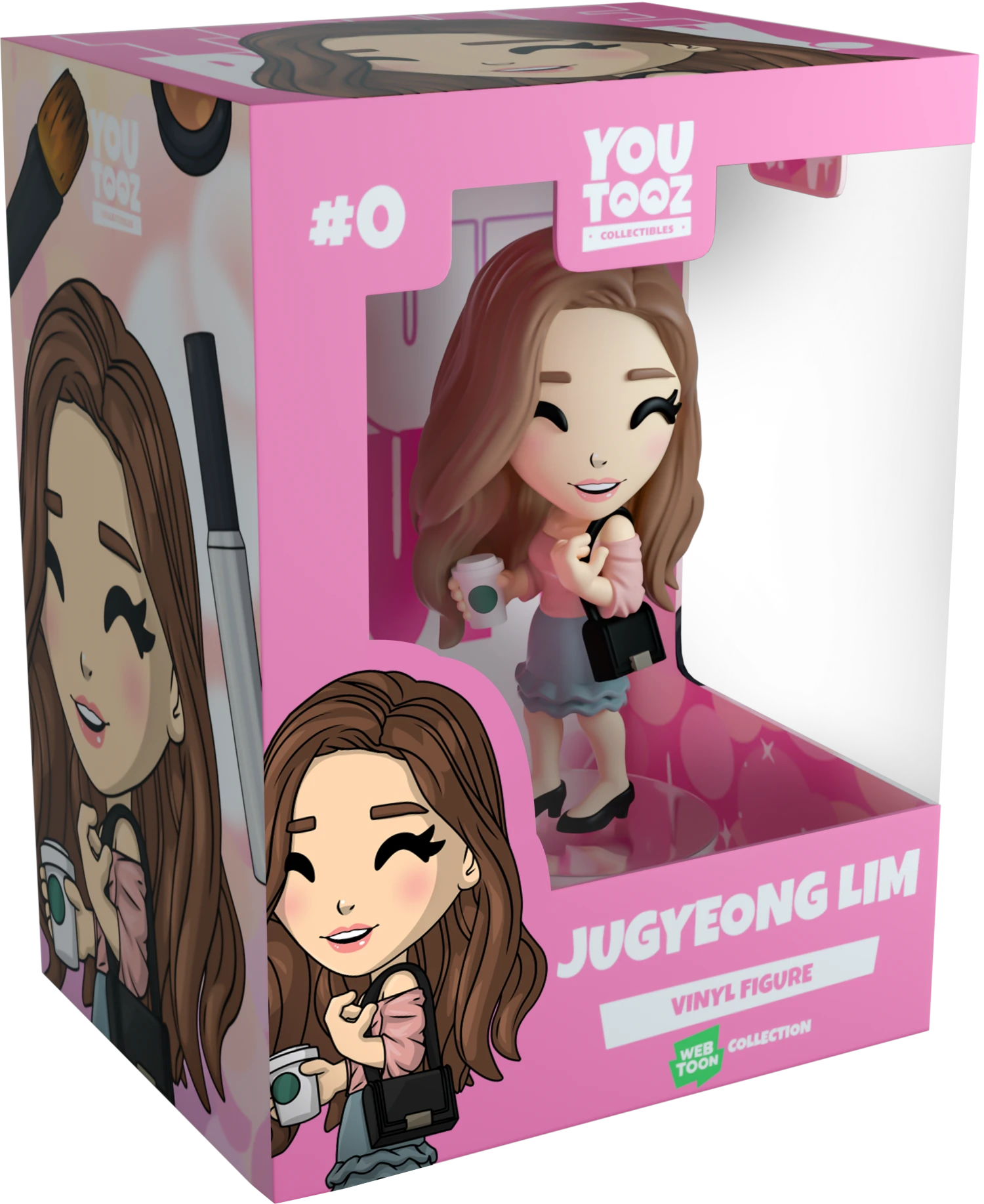 Introducing the first Webtoon x Youtooz Collection! The beautiful Jugyeong from the famous Webtoon “True Beauty” has arrived to Youtooz. Standing at 4.6 inches, Jugyeong is posed looking over her left shoulder, dressed in a soft pink off the shoulder top with a soft blue puffy skirt. Clutched in her right hand is a white coffee cup and her left hand is holding on to the strap of her designer black bag. To match with her bag, are her black designer high-heels. Her hair is perfectly styled in beautiful waves and her make up is perfectly applied, with a soft smile on her glossed lips. The exterior of her double-walled packaging shows a pink and sparkling background with a plethora of different makeup items placed around the frame. The interior is a beautiful pink background with sparkles and glitters decorating the “True Beauty” title logo. This collectible ships in a matte, embossed, protective outer sleeve and a custom sized plastic protector for maximum protection during shipping.