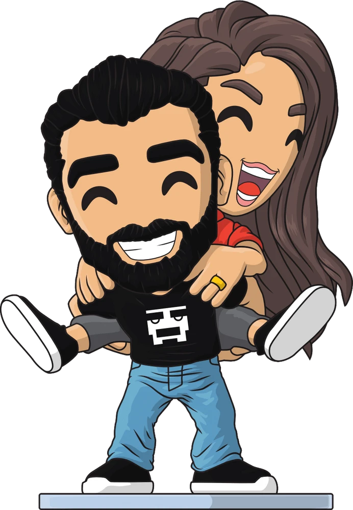 The dynamic duo of Maya and Yehuda Devir have come to Youtooz! Join the pair as they go through life together as a couple and parents. Standing at 5 inches, the couple are posed in a super cute piggy back pose as Maya clings onto Yehuda’s back. Yehuda is dressed in a black shirt with their logo on the center and blue jeans while Maya is dressed in a red shirt and gray leggings. With huge smiles on their faces, they are both wearing a gold ring on their left ring finger. The exterior of their double-walled packaging shows a collage of cartoon sketches of themselves sprawled around. The interior is a scene of an empty park drawn in blue hues. This collectible ships in a matte, embossed, protective outer sleeve and a custom sized plastic protector for maximum protection during shipping.