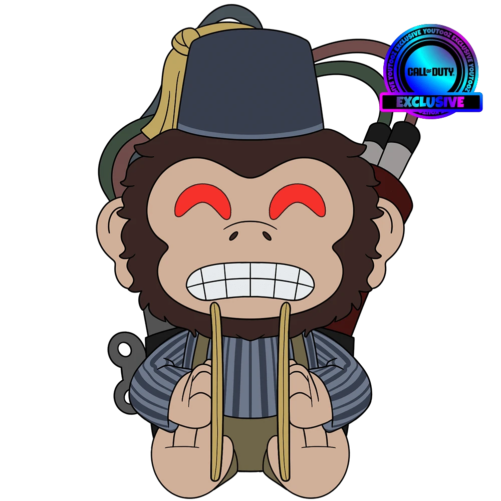Oh no! Someone threw a Monkey Bomb into Youtooz! We better crowd around it, Im sure nothing bad will happen! This terrifying monkey sits at 9 inches tall with a pair of cymbals strapped to each hand, readying to let out a series of blaring clashes, as their gritted teeth curve into a slight frown and their eyes glow a bright red. Wearing a blue fez adorned with a gold tassel and a striped long sleeve shirt with khaki shorts, thick brown fur covers their head, leaving only a pale face. While strapped to their back is a series of explosive canisters with colored wires running to the black detonator as a crank sticks out to the side, ready to prime and throw into the midst of battle! This plush is packed to the seams with 100% PP cotton and made of a mixture of sublimated and normal minky materials, absolutely perfect for cuddling or distracting a horde of zombies at the exact right moment!
