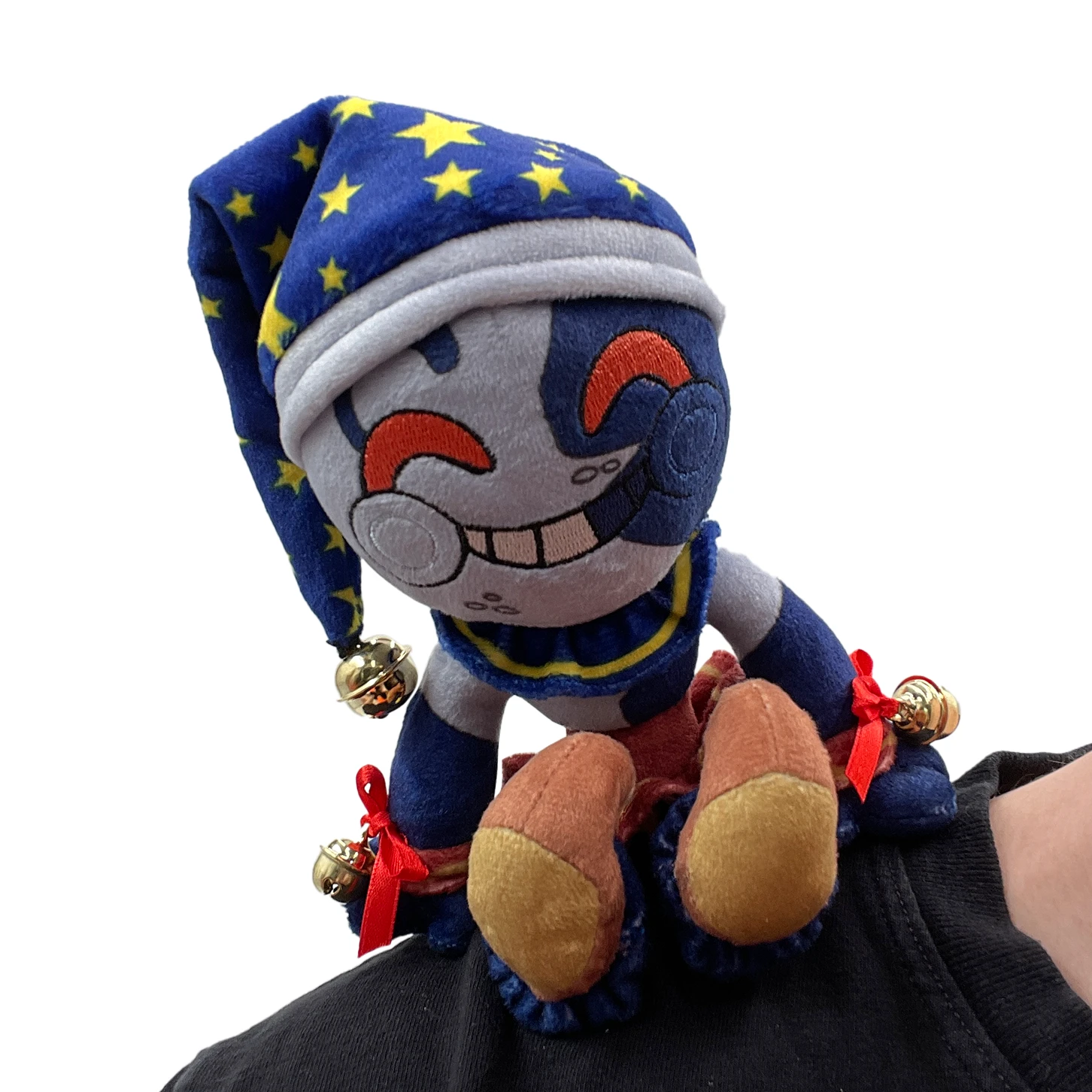 “I’m putting you in time out!” It doesnt matter how dark it is, Moons Youtooz debut will make sure to brighten things up! At 6 inches tall with a cheeky curling smile curling up their two toned grey and blue face, shining red eyes peer out underneath a long slouching star patterned blue hat thats tipped with a bell. Their frilled collar is the same colour as their flared pants, while a brown waist piece matches wrist bands and curled shoes. This plushie is made of a minky material packed to the seams with the most huggable squishy 100% PP cotton and comes equipped with a magnetic disc to let it perch firmly atop your shoulder as the best accessory and a true testament to your love of the fandom!