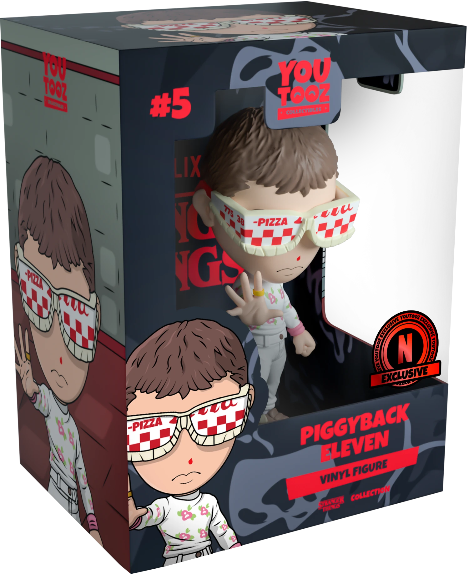Eleven has a plan, and she won’t stop until her friends are safe. Standing at 4.6 inches, Eleven is dressed in a white long sleeve shirt that is patterned with pink flowers and pink sleeve cuffs. On the bottom she is wearing matching white pants. Her shoes are a brown colored sneaker. Her right hand is posed in front of her while her left hand is curled up in a fist by her side. There is a little bit of blood that is trailing from her nose and she is accessorized with a pizza box that has been turned into glasses. The exterior of her double-walled packaging shows Eleven floating inside of a small tub of water while trying to go into The Void. The interior is a pattern of black, sticky, and slimey looking texture with the Stranger Things logo. This collectible ships in a matte, embossed, protective outer sleeve and a custom sized plastic protector for maximum protection during shipping.