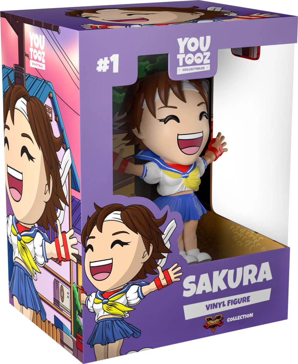 Uh oh! Pleased to meet you. Yeah!! Let’s go! The ever happy Sakura makes her Youtooz debut! 4.8 inches tall, she is captured eagerly running into battle and trying to stop with her heels. The force of her run generates a cloud of smoke underneath her. She wears her Japanese school girl uniform, complete with red MMA gloves. Her outfit is captured blowing in the wind as she does her best to slow down. Her double-walled window box is illustrated after an evening rural street setting in Japan. This collectible ships in a matte, embossed, protective outer sleeve. That was an awesome fight. Thank you very much!