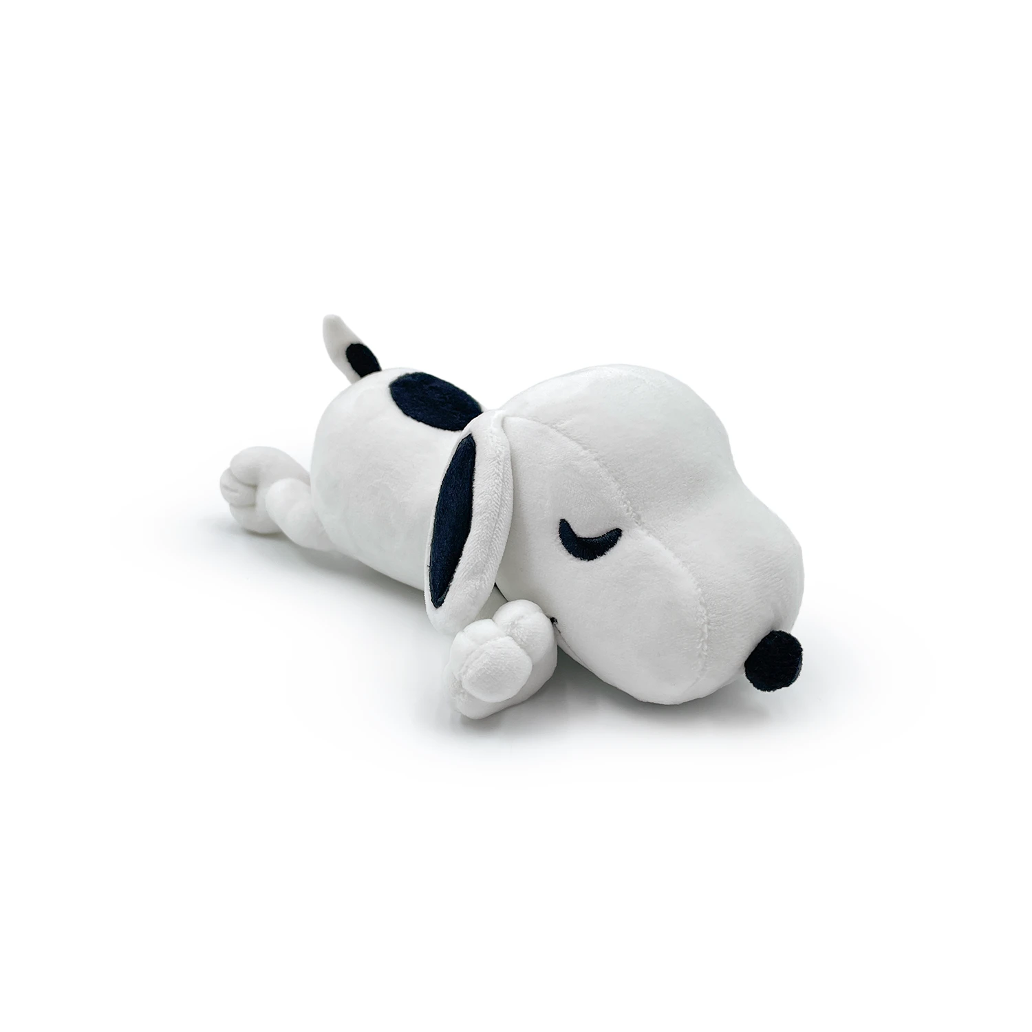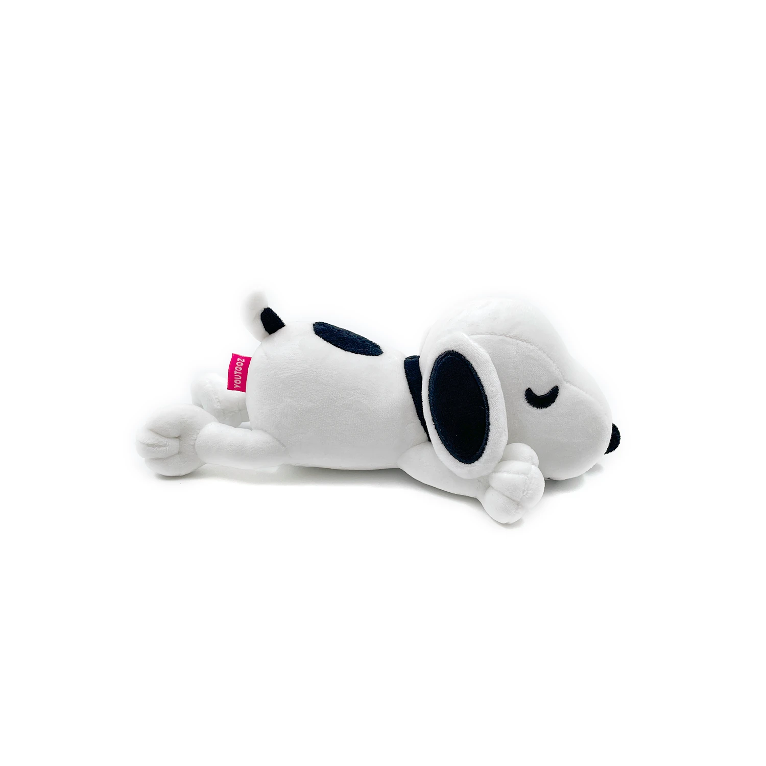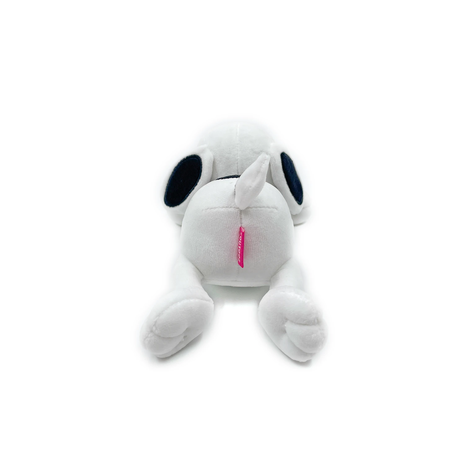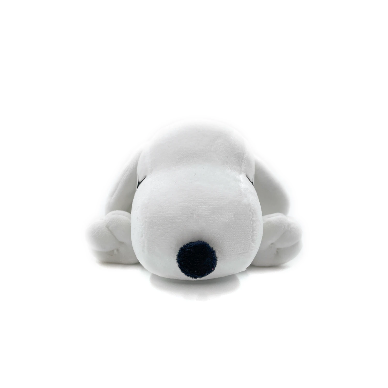 Snoopy has switched up positions to flop down on his belly for this sleepy plush! Laying down at 9 inches long all four of his legs are kicked out lazily, with his two front paws resting at the side of his sleepy head. His long white body is perfectly contrasted with a deep black nose and spots, while his small tail sticks up blissfully. This plush is packed to the seams with 100% PP cotton and is made of a normal minky material, absolutely perfect for cuddling or sleeping the day away.