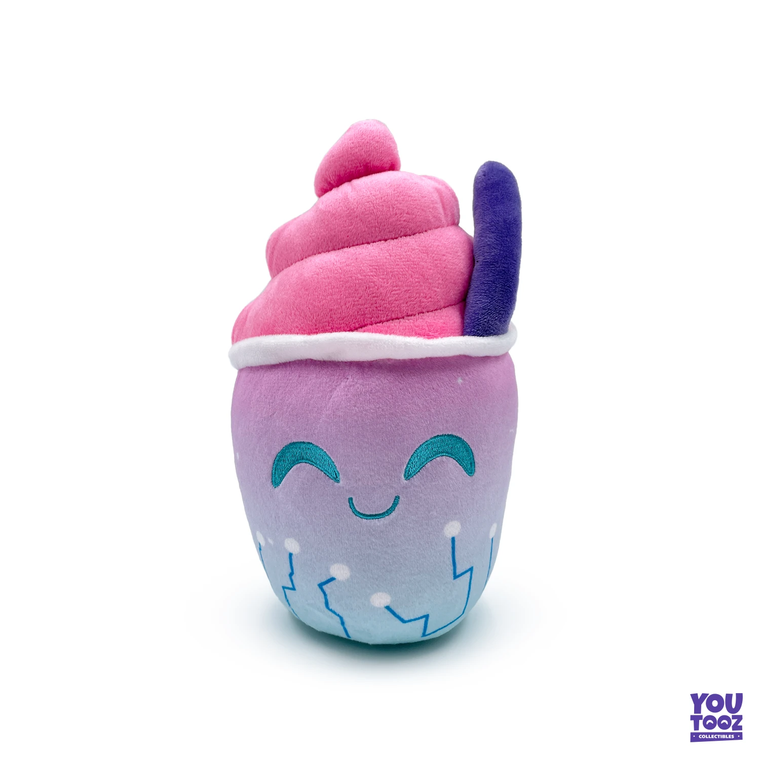 Terabrite makes their debut to the Youtooz world! Sitting at 6 inches, this Terabrite plushie is an incredibly cute slush in a cup. With the cup itself fading from a light pink to a light blue, there are digital lines that are decorating the bottom of the cup. With a beautiful pink swirl on the top, this drink is topped off with a purple straw! The iconic Youtooz eyes are embroidered on the center of the cup in a pastel teal color. This plush is made out of 100% soft PP cotton and is generously filled with stuffing.