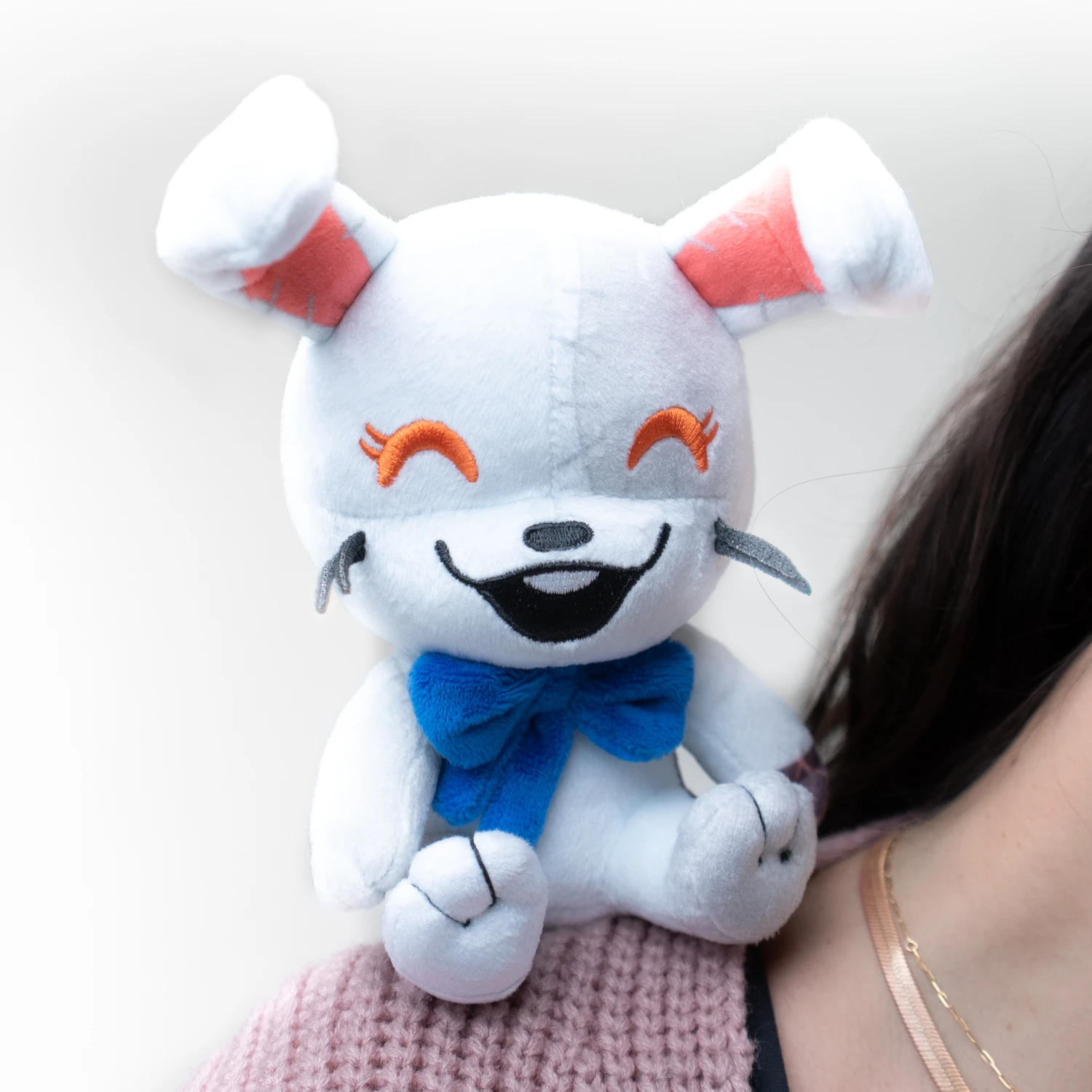 The Vanny Shoulder Rider jumps straight from the screen and onto your shoulder to whisper their plans straight into your ear! With a perfectly patchworked body thats sat at 6 inches tall, her bright red eyes and open smile let you know shes here for fun and mischief! With long dishevelled ears and a mismatched paw, she wears a messy blue bow under her chin as she readies herself to be your friend, or foe! Each plushie is a sublimated minky material packed to the seams with the most huggable squishy 100% PP cotton and comes equipped with a magnetic disc to let it perch firmly atop your shoulder as the best accessory and a true testament to your love of the fandom!